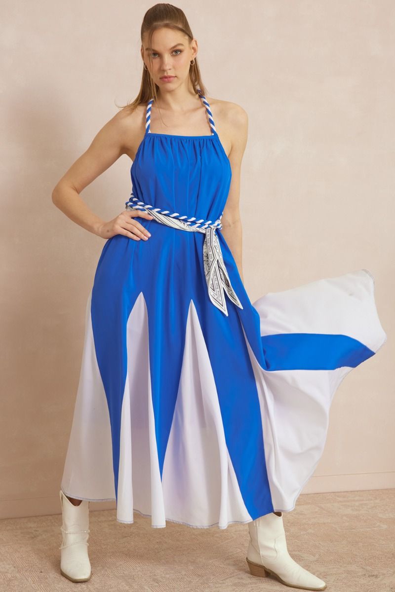 🪁 Want an outfit that's easy and breezy? Our Azure Escape Maxi Dress is the ultimate beach girl outfit. It's adjustable rope detail straps give it a nautical feel, and the peekaboo white panels in the skirt give it a playful touch! Sizes available: small - large.