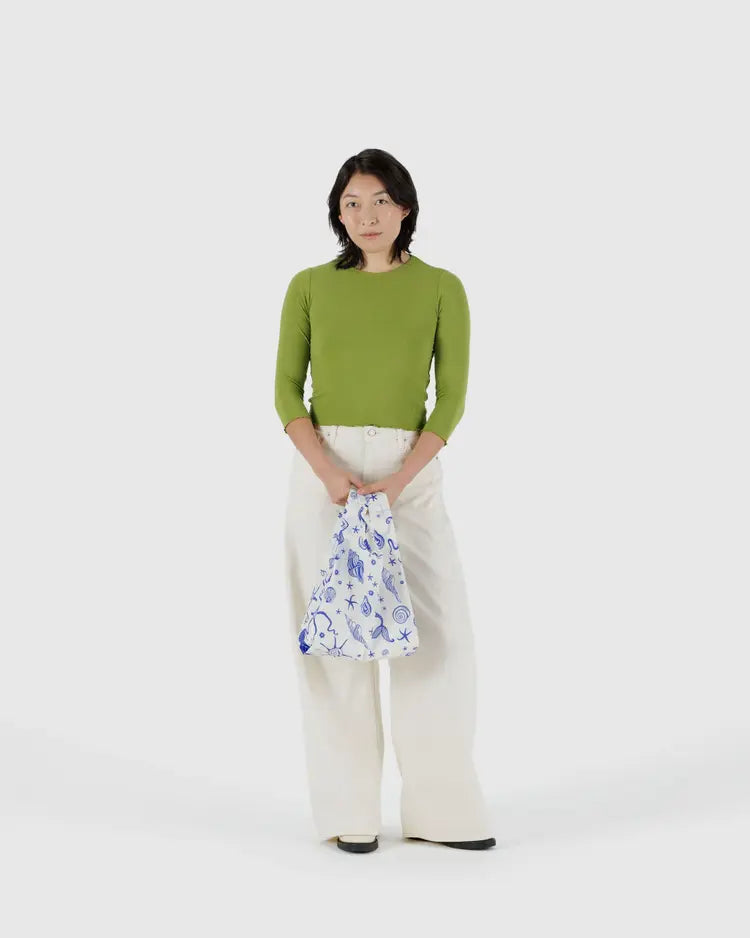 Standard Baggu packaging is made from FSC-certified 100% recycled paper stock, with non-plastic eco-friendly coatings that are fully recyclable. The mailers we use to ship our orders are made in the US from 100% recycled paper and are fully recyclable.