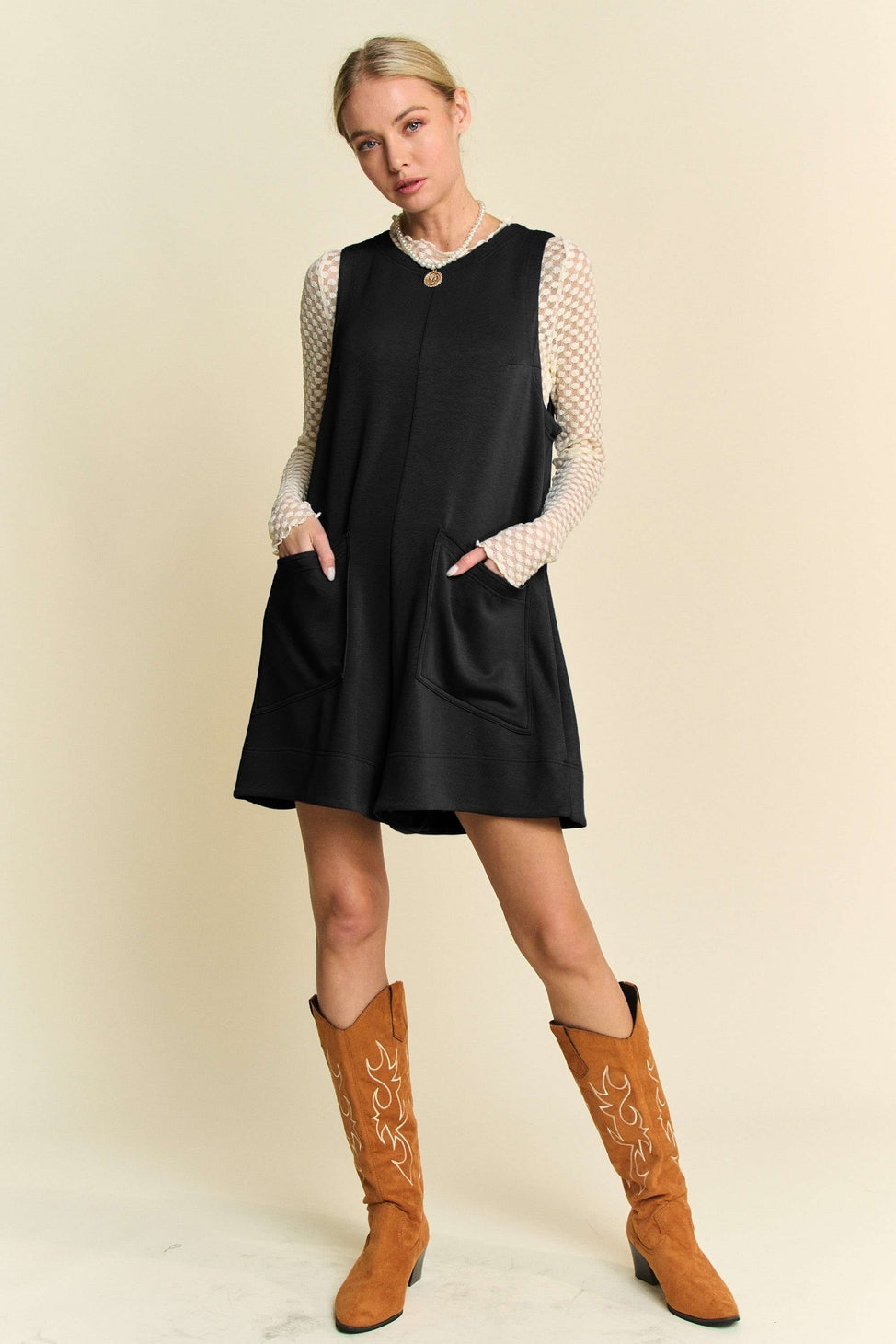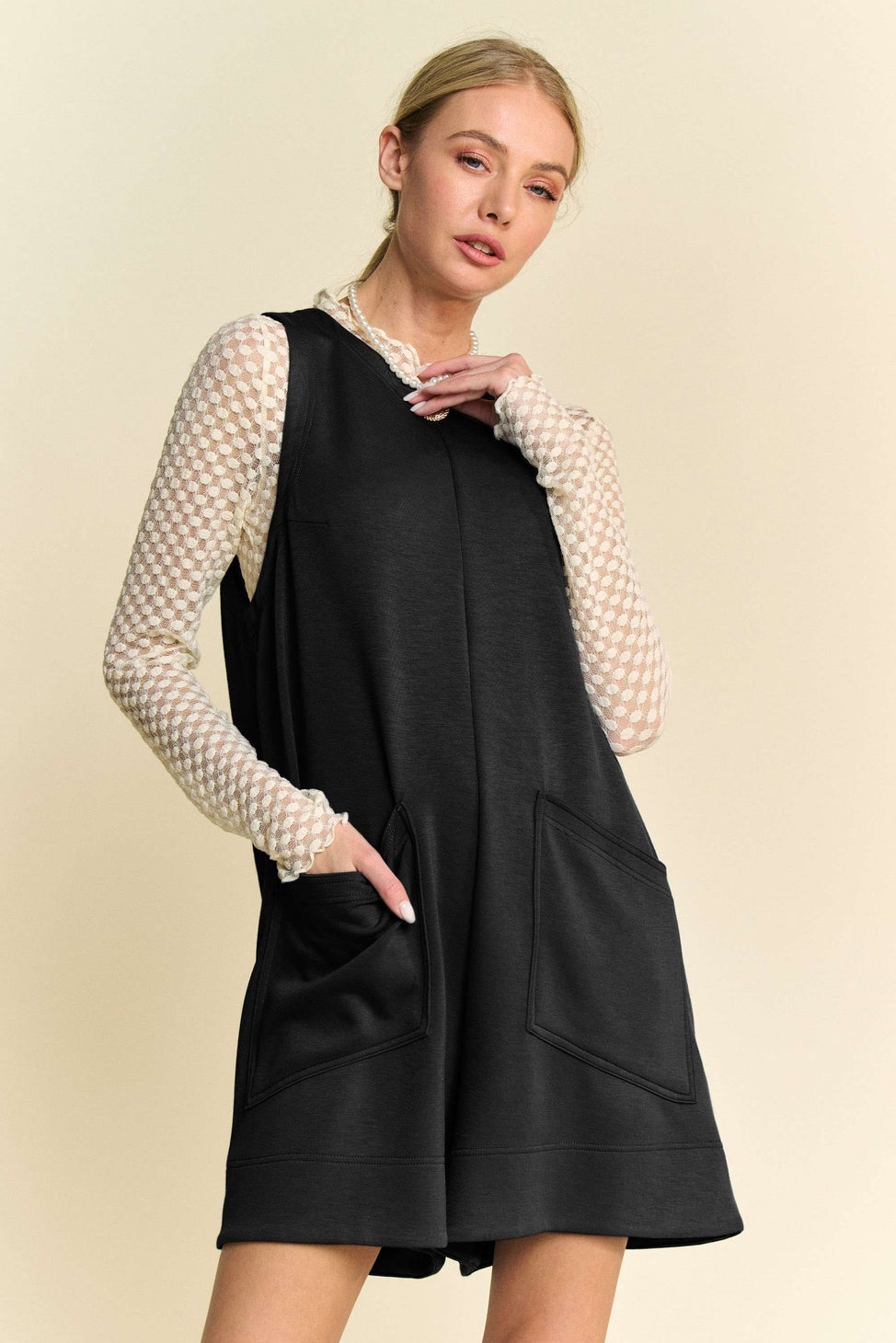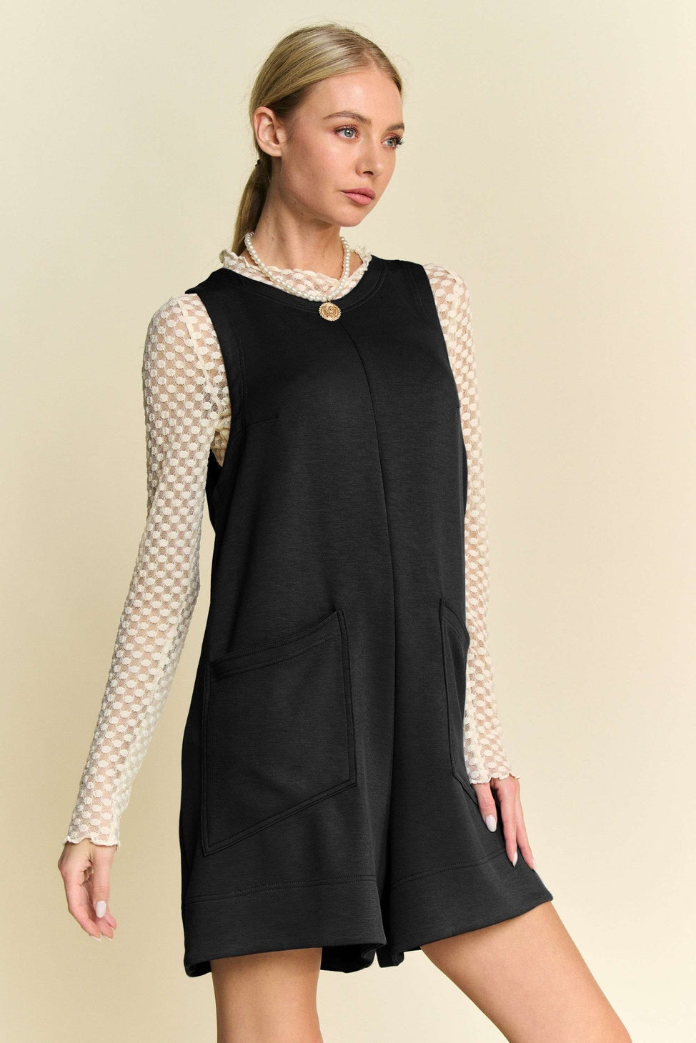 The City Stroll Pocket Romper is the definition of casual sophistication — easy, effortless, and endlessly wearable. Crafted from soft structured fabric with a subtle sheen, this sleeveless black romper is made for days when you want to look put-together with zero effort. Featuring oversized patch pockets and a relaxed yet flattering fit, it’s the perfect throw-on-and-go piece for every season.