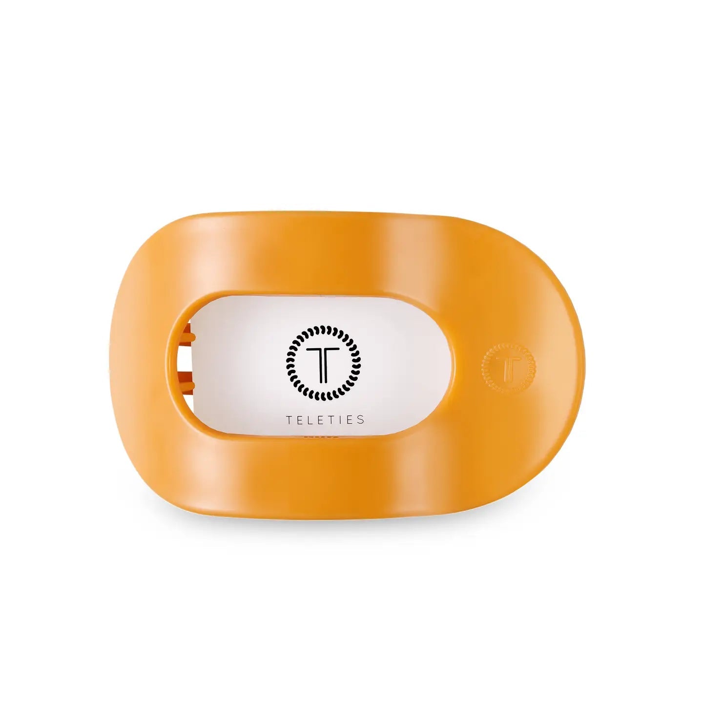 Lay flat and relax with the new TELETIE Man- go for it Flat Round Hair Clip in orange. This hair clip is designed to allow you to lay back flat, do yoga, or sit comfortably in a seat with a headrest, and it is made with the same material that is nearly unbreakable.