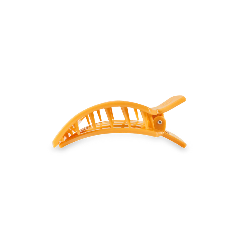 Lay flat and relax with the new TELETIES Mango for it! Flat Square Hair Clip in Orange. This hair clip is designed to allow you to lay back flat, do yoga, or sit comfortably in a seat with a headrest, and it is made with the same material that is nearly unbreakable.