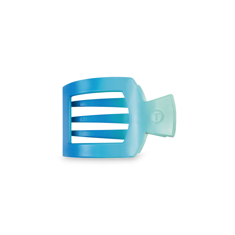 Lay flat and relax with the new TELETIES Poolside Flat Square Hair Clip in Blue. This hair clip is designed to allow you to lay back flat, do yoga, or sit comfortably in a seat with a headrest, and it is made with the same material that is nearly unbreakable.