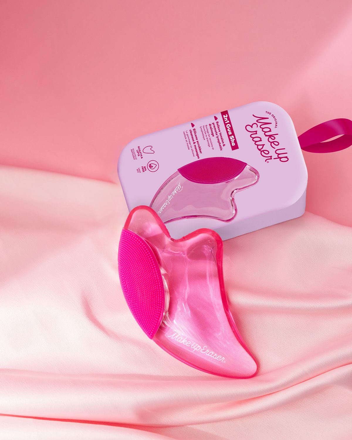 We don't just erase makeup, we also erase puffiness & inflammation! The PUFF Eraser is a 2n1 Gua Sha that is dolphin-shaped to massage facial muscles to help relieve tension & contour the face. Includes a silicone scrubber with two different bristle textures to help deep clean skin. Durable, easy-to-clean, easy-to-use, & BHA Free.