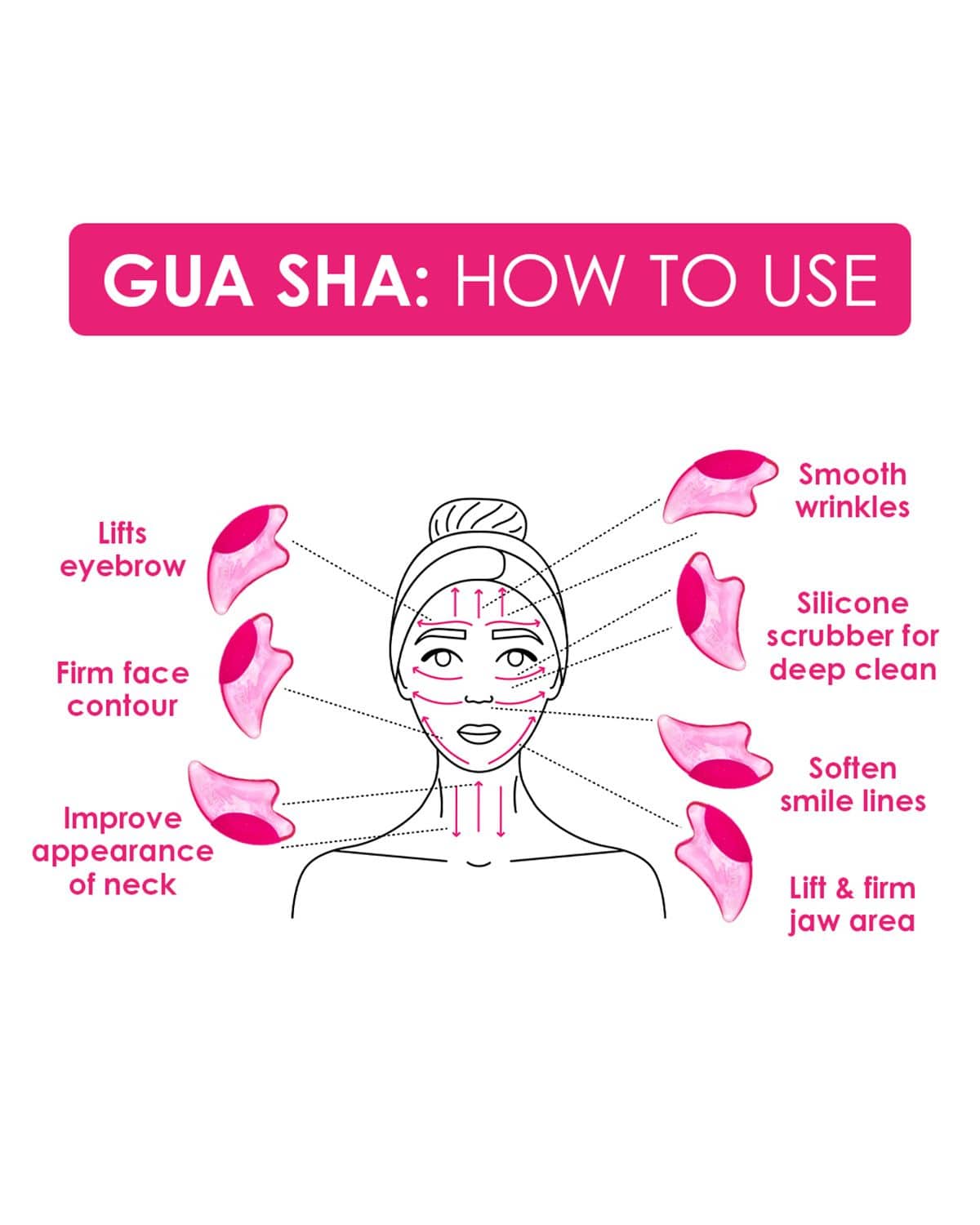Apply a serum or oil to the skin to begin sculpting. Start in the center of face & scrape outwards. Use the divot on the nose, in between brows & along the jawline. Use the longer edges on cheeks & forehead.