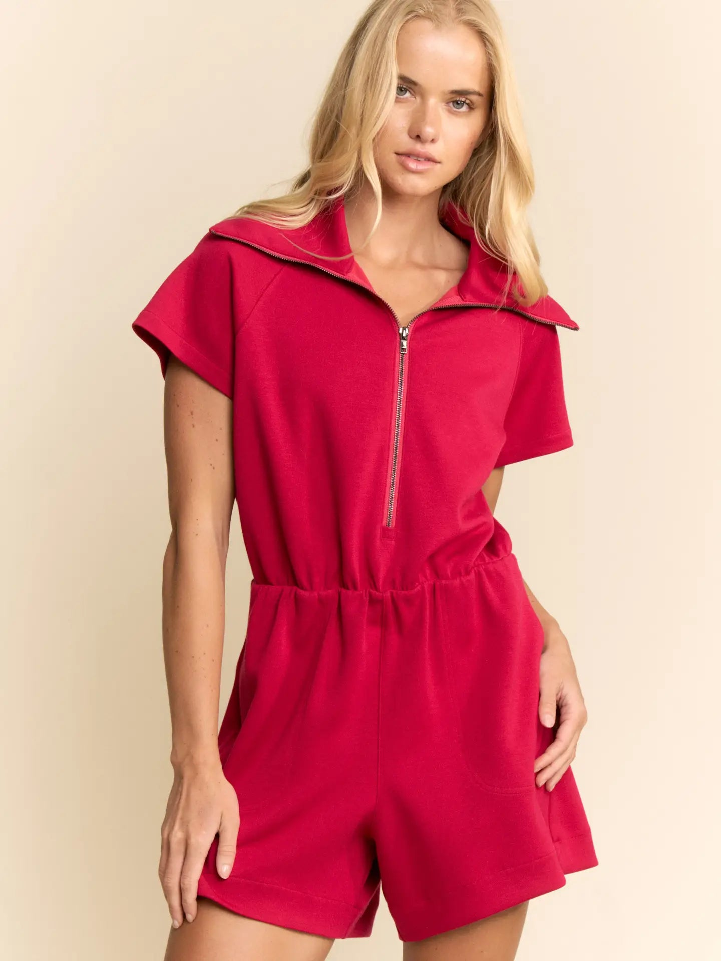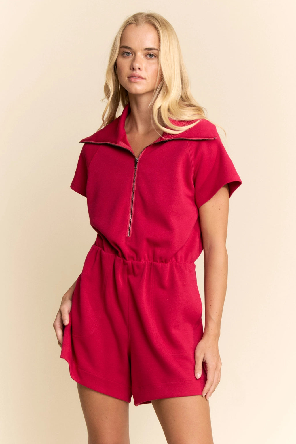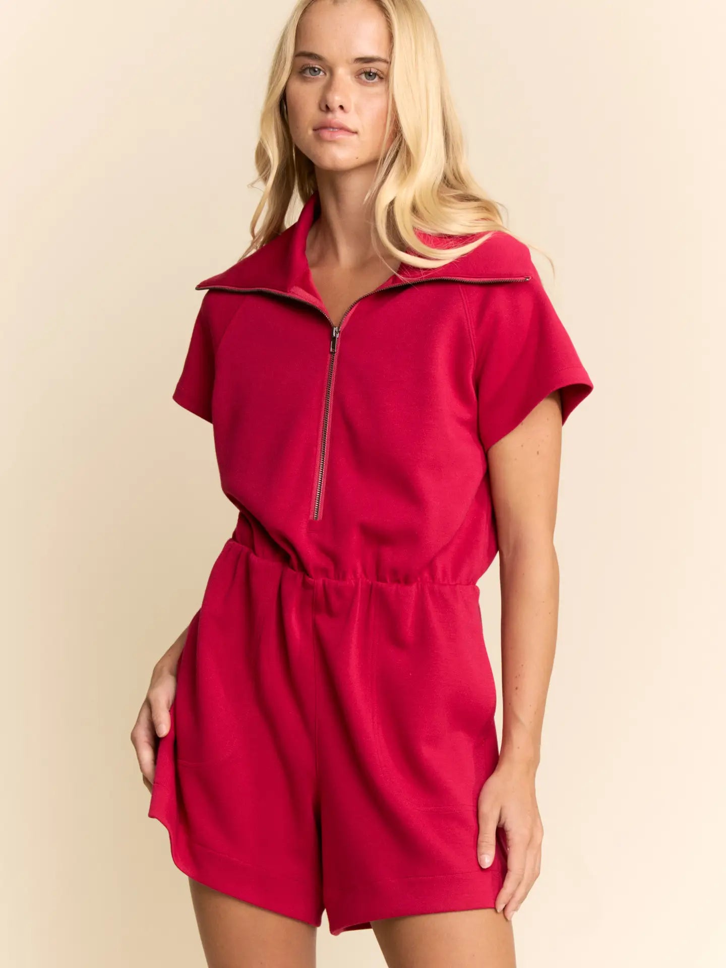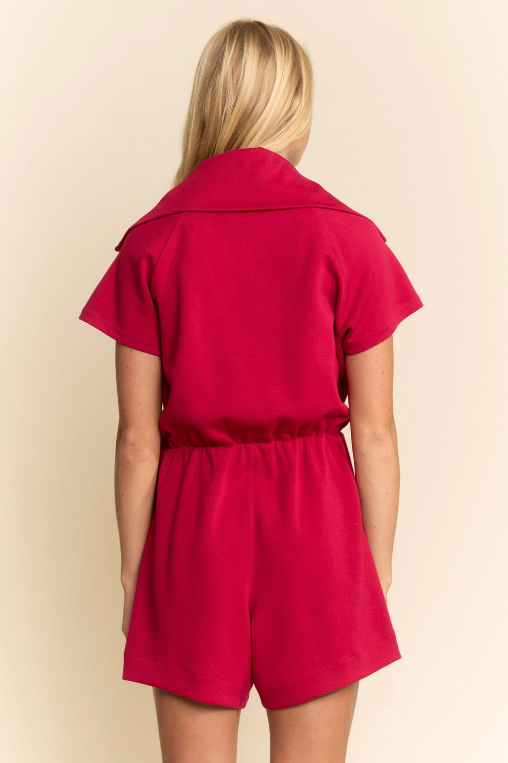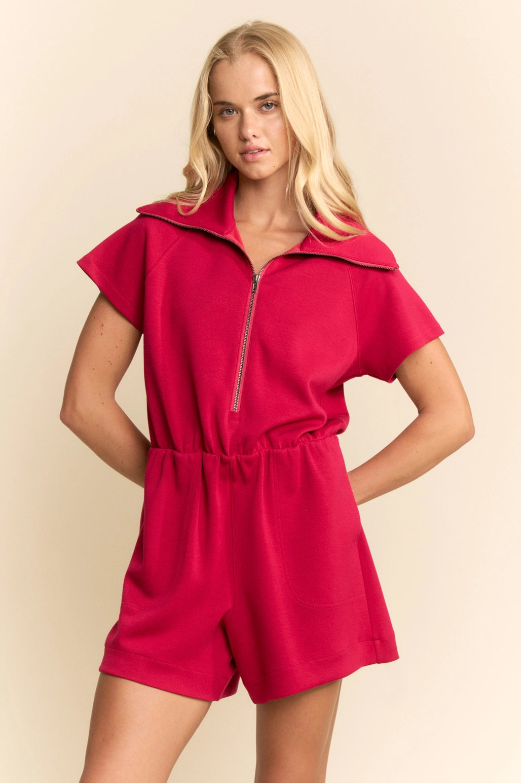 Sweet, playful, and effortlessly polished—the Raspberry Romper is the kind of piece that makes getting dressed feel easy and fun. Designed in a vibrant raspberry pink, this romper brings a bold pop of color while keeping things comfortable and chic. The relaxed silhouette features a sporty half-zip neckline with a structured collar, giving it a modern, elevated feel that’s just as perfect for a casual day out as it is for a weekend getaway.