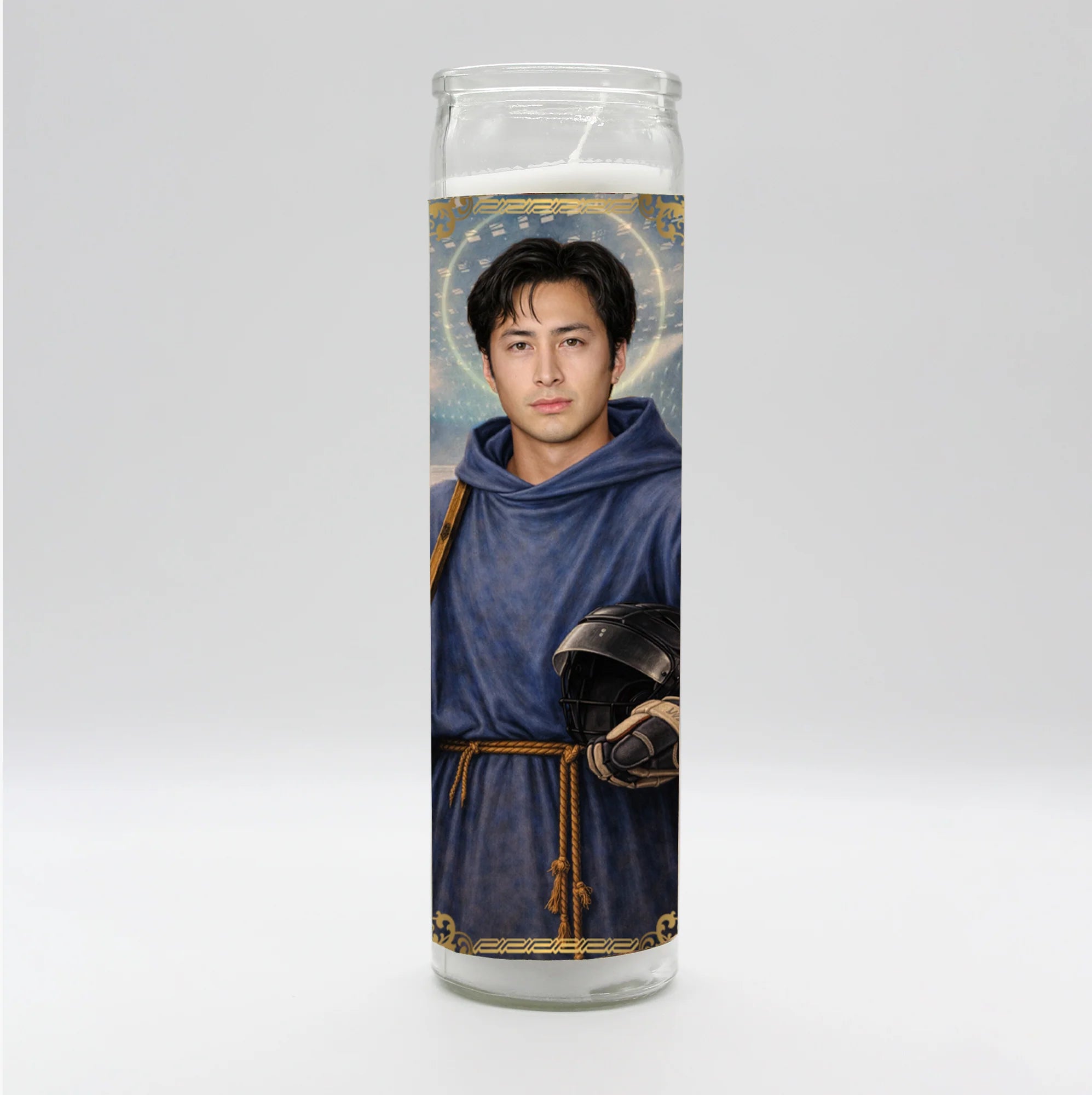 Tall white candle, hand poured in Mexico, design and assembled in the USA. Candle is unscented. Hudson Williams / Heated Rivalry Shane Hollander inspired parody art prayer candle.